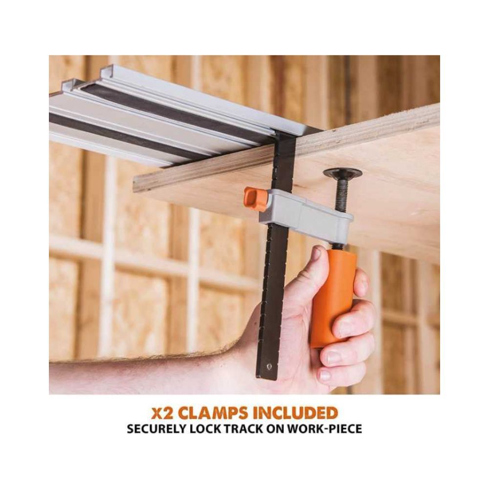 The track is supplied in two pieces of 2- 1/4 foot track with connectors and features low friction glide strips that ensure the circular saw glides smoothly over the track. It also includes specially designed clamps that are compatible with most brands. The ST1400 is easy to store and transport with a carry bag included. Achieve straight line cutting accuracy with the Evolution ST1400 Track.