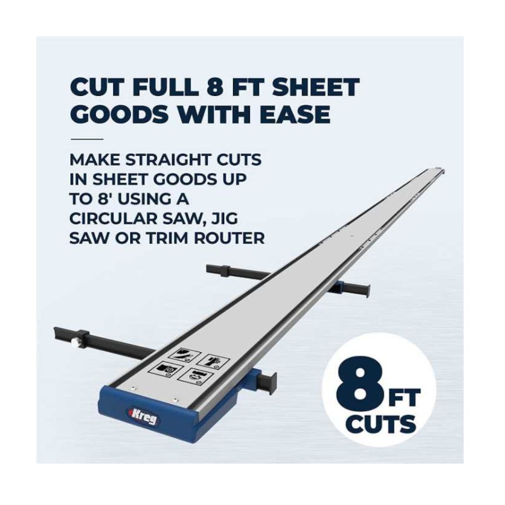 The Kreg KMA4700-E Straight Edge Guide is a versatile and easy-to-use tool that lets you make perfectly straight cuts in sheet goods. Whether you're using a circular saw, jigsaw, or trim router, the guide makes it easy to see exactly where you'll cut so you can get the results you expect.